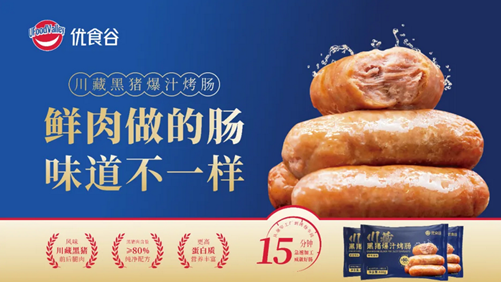 优食谷深刻洞察到正在变化的消费趋势,强化对川藏黑猪的开发,推出了针对火锅场景的川藏黑猪雪花卷、爽滑,开创“火锅涮黑猪肉时代”;针对电商及零售市场开发了锁鲜装产品;在烤肠品类中细分出更具特色的川藏黑猪爆汁烤肠;针对B端中餐业态推出了鲜香肉馅,成为状元水饺、熊大爷水饺等连锁品牌的供应商……在猪肉消费市场,川藏黑猪正在引领一个高质价比的新消费趋势。