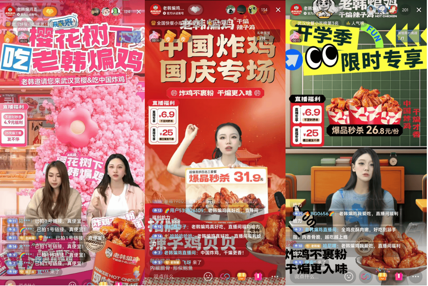 回看老韩煸鸡的发展历程,从街边小店到武汉本地连锁,走了18年,原创“三炸一煸”工艺,打磨中国炸鸡品类。从武汉向华东迈出第一步,用了3年,在抖音建立起品牌认知,把线上流量转化为门店销量。从华东走向全国,只用了不到1年,通过在抖音经营,老韩煸鸡实现扩张加速。