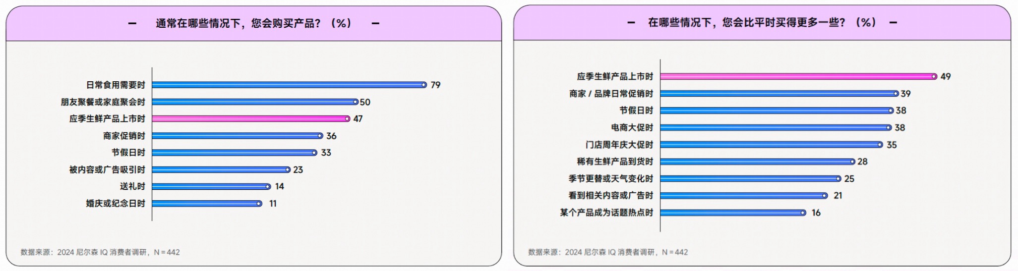 作为家庭日常食用刚需,生鲜果蔬全年整体销量稳定。对生鲜果蔬,消费者对其“应季”属性的感知最为强烈,且相比于线下渠道,消费者在线上渠道尤其是内容电商的购买力更佳,平均每次购买比线下渠道多支出 30%,且购买频次亦高于线下渠道。