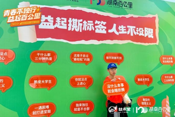 益禾堂将品牌年轻活力的特色深入贯彻到底。百公里终点处,益禾堂设置了“益起撕标签墙”,引来众多选手纷纷打卡。撕下刻板印象里的“标签”,做不被束缚的自己。
