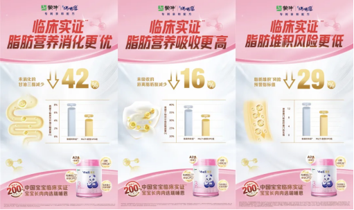 实证研究结果显示,与普通奶粉喂养组相比,使用亲和专利配方喂养的宝宝们未消化甘油三酯减少了42%、未吸收游离脂肪酸减少了16%,同时脂肪堆积风险预警指标值下降29%,这表明亲和专利配方有助于提升宝宝的脂肪营养吸收效率,降低宝宝的消化负担。