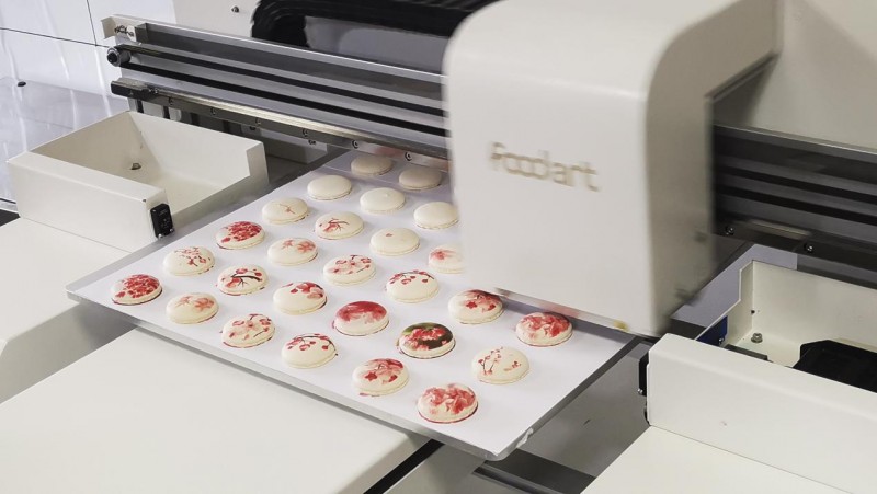 膳印X2 桌面级食品喷花机,正在进行食品装饰喷花