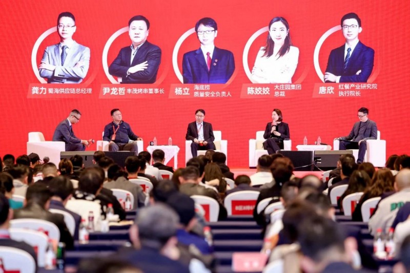 在圆桌对话环节,蜀海总经理龚力、丰茂烤串董事长尹龙哲、海底捞质量安全负责人杨立、大庄园集团总裁陈姣姣、红餐产业研究院执行院长唐欣五位嘉宾,代表产业链上下游不同角色,围绕餐饮供应链的挑战与机遇、供应链的个性化建设、产品品质提升以及共赢链构建等话题展开深入探讨。