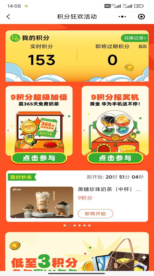 除了积分摇奖机,益禾堂还开启了积分夺宝活动,低至3积分就可参与夺宝。这是一场充满神秘色彩的夺宝之旅,让手里的积分化身为探险的钥匙,开启一个个未知的宝藏。用户可以在每一轮的积分寻宝活动中,挑选自己喜爱的奖品,并投入相应数量的积分来获取寻宝码。当该轮寻宝活动的参与人数达到要求后开奖,开奖时从所有夺宝码中随机抽取一个获奖。每一次夺宝,都是一次心跳加速的瞬间;每一次成功,都是对积分价值的最好诠释。