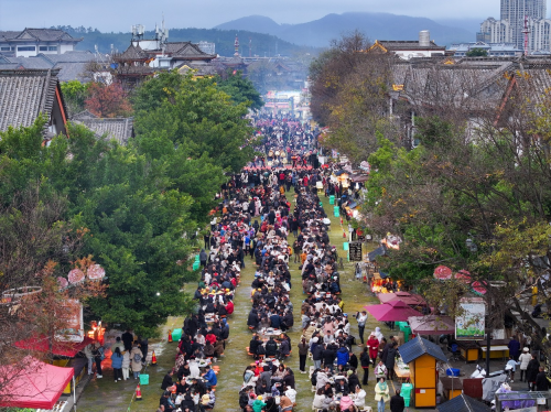 作为彝族年活动的重头戏之一,彝族羊汤锅长街宴是彝乡特色饮食文化的一个缩影,生动体现了彝乡人民团结友善、热情好客的传统民俗。数百桌“彝族羊汤锅长街宴”沿街排开,万人同时在冬日里晒着云南温暖的的太阳,喝下一碗冒着滚滚热气的羊汤,吃下大块鲜香无比的彝家黑山羊,一起在美食与欢愉的氛围中迎接彝历新年的到来。
