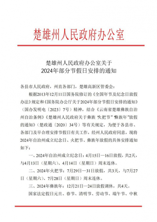 云南再次上大分!当全国大部分地区的打工人还在冬日的瑟瑟寒风中闻着“班味”苦熬,本周云南人又要开始放假了!这次迎来假期的是楚雄彝族自治州的小伙伴,彝族人民一年一度最重要的传统节日——彝族年到了!2024年12月21日至24日连休四天!