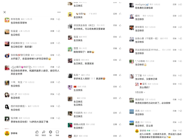 消息一经宣布,公众号评论区的生日祝福瞬间霸占屏幕。还有社群里此起彼伏的祝福声,粉丝们争先恐后晒出领券截图,每次刷新页面,都能看到全新的评论不断接龙。