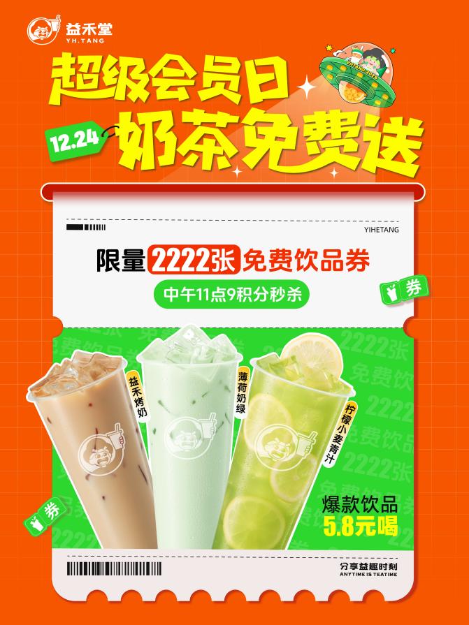 自12月5日起,益禾堂正式拉开了积分狂欢月的序幕,品牌同步开启了积分清零抵现,抽奖活动,还上线了积分超级加倍、积分摇奖机、积分夺宝、积分抵现等多种玩法;奖池包括定制年度黄金积分纪念币、华为Mate 70手机、大疆pocket3、365天免费喝奶茶等一系列大奖,真正让消费者的积分“活”起来。