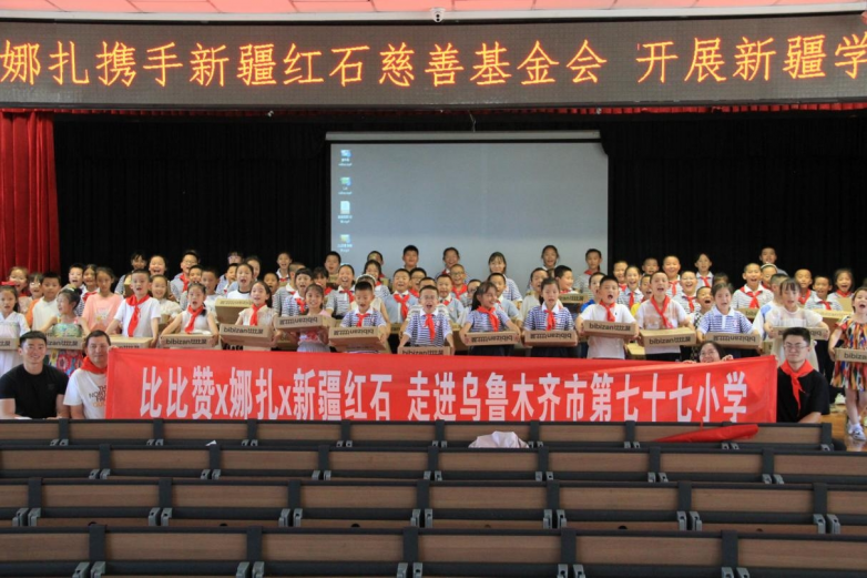 2024年7月,比比赞携手娜扎和新疆红石慈善基金会,发起“新疆学子助学行动”公益活动,向乌鲁木齐市第七十七小学、乌鲁木齐市第136小学捐赠零食礼盒,带去爱心美味,用行动点亮希望。与此同时,比比赞在社媒平台上与积极与娜扎全球后援会、新疆红石慈善基金会官媒展开互动,以期用更多的声量与流量,为教育公益事业注入来自全社会的澎湃“正能量”。