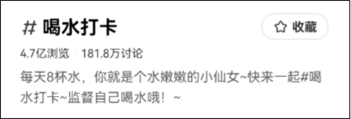 在小红书等社媒平台,#喝水打卡、#每天8杯水计划、#喝热水等话题快速走热,仅#喝水打卡话题浏览量即达到4.7亿,“喝杯热水,一切都会好的”“天冷喝温水”等均成为知乎热帖。中医学者也认为,冬季喝白开水才最养人。