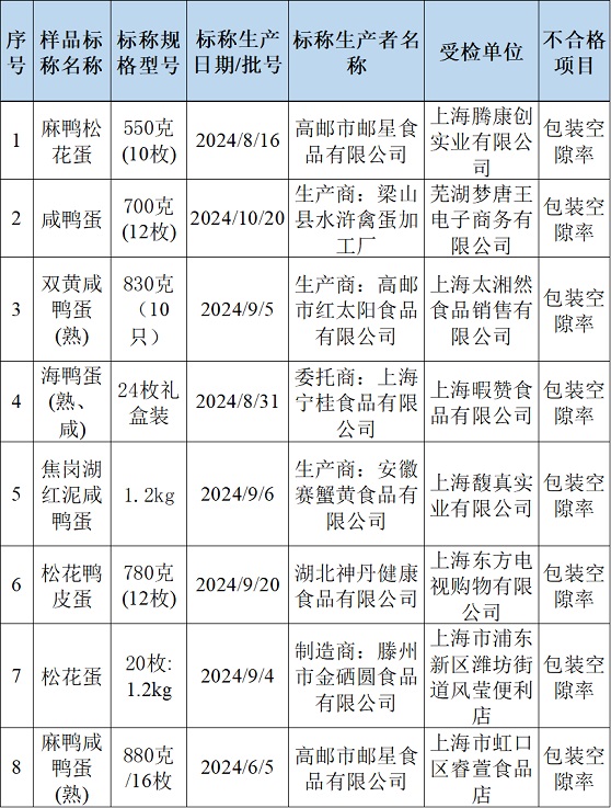 近期,上海市市场监督管理局对本市生产领域和流通领域(含电商平台)的蛋制品开展了商品包装物减量(过度包装)监督抽查。共抽样并完成检验80批次,其中合格72批次,不合格8批次,不合格发现率10%。