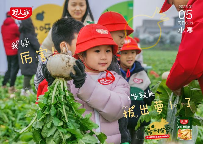 老话说冬吃萝卜夏吃姜,对于许多家庭而言,冬天里少了萝卜就不算过冬,今年1月4日,好人家“一封家书”栏目携手20个家庭前往眉山市好人家萝卜原料基地,共同踏上一场特别的旅程。在这里,好人家开办萝卜基地小课堂,由好人家原料技术部老师生动地讲述萝卜在大自然中经历90天的成长的故事,每一颗萝卜都达到食品安全标准,让大家对这颗看似普通的食材有了全新的认识。