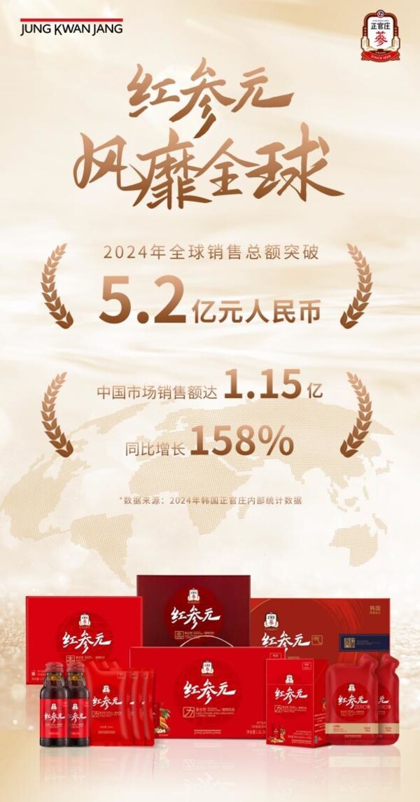 自1988年上市以来,正官庄旗下健康草本饮料品牌"红参元"不但在韩国本土畅销,更风靡中国、美国、日本、欧洲等多个国家及地区。在国内,红参元品牌系列产品在线上电商平台、线下商超渠道均有销售。2024年,红参元品牌全球年销售额超过5.2亿元人民币,仅中国市场的销售额就突破了1.15亿,同比增长158%,实现产品业绩和品牌声量的爆发式增长。