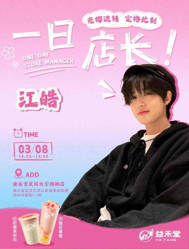 “3月樱花看武汉,武汉樱花来武大”。赏樱怎能不来武汉?据官方预告,线下也将开展一系列活动。3月8日,益禾堂武汉大学珞珈店开业,此次特邀两位“明星店长”线下助力,与消费者们一同“赏春”,定格美好时刻!
