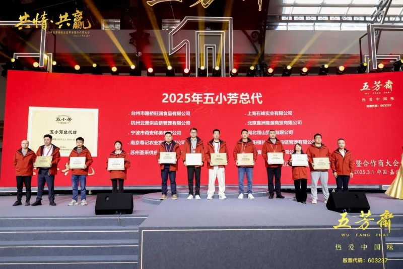 会议期间,五芳斋还举行了2024年度合作商颁奖仪式,对过去一年在市场拓展、销售业绩提升、品牌推广等方面表现卓越的合作商予以表彰。