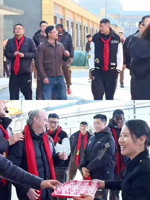 选择在惊蛰与春分之间启动春酿之约,暗含东方智慧。一担粮领导与吉林东北虎全体球员共同完成“封坛入窖”仪式,球员们在定制篮球上写下签名祝福,双方互换礼物,并合影留念,开启双向奔赴的新征程。