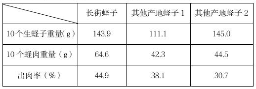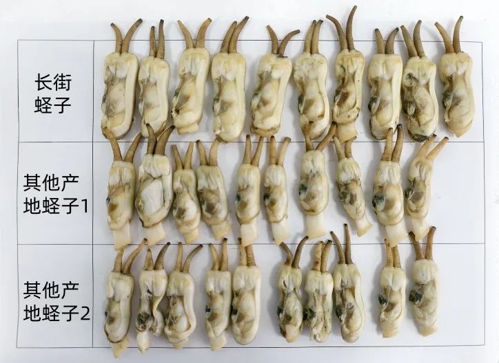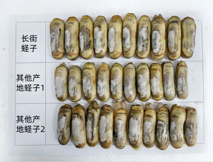 工作人员随机选取长街蛏子与两款其他产地蛏子进行对比,结果如下: