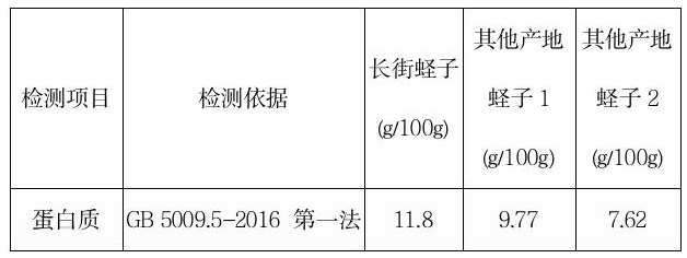 实验结果显示,长街蛏子的蛋白质含量高达11.8g/100g,优于其他两款蛏子。