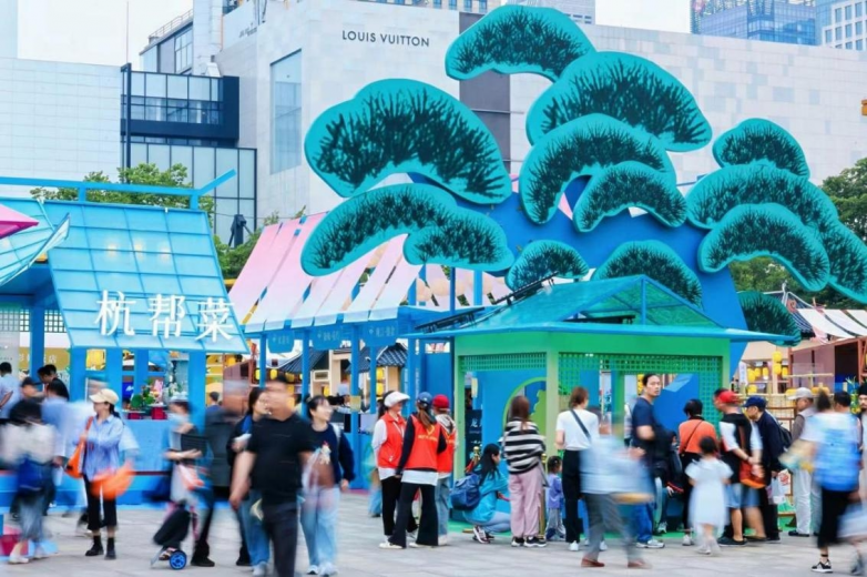 活动释放强劲消费势能:五日市集累计吸引超35万人次参与,12区县现场交易额近150万元,高峰期单日销售额达40万元。直接消费金额突破2700万元,带动武林周边商圈消费同比增长超45%。活动同步推出“外贸优品中华行”展区,助力浙江智造以“同线同标同质”回归本土,实现文商旅深度融合。