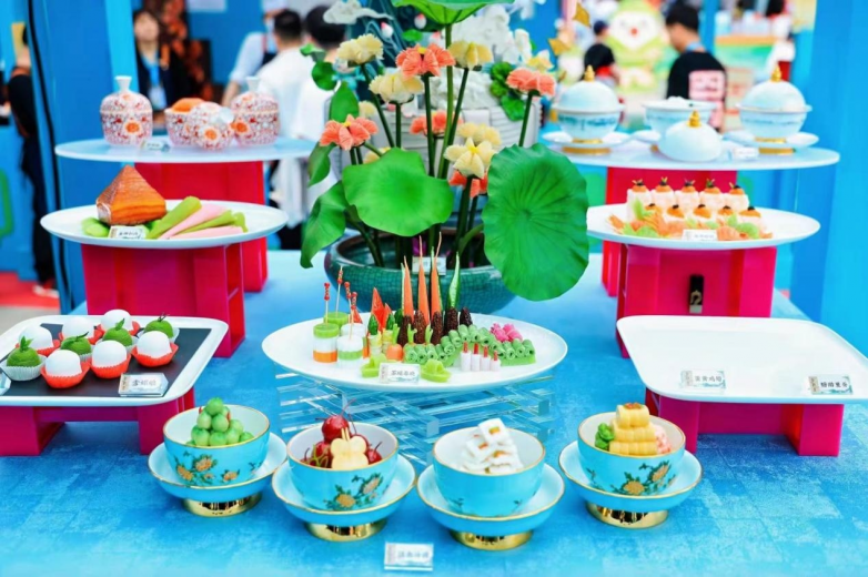 杭州馆以京杭大运河为纽带,串联全市13个区县特色美食,打造沉浸式宋韵场景。汉服NPC巡游、古风展演等元素交织,让“风帘翠幕,参差十万人家”的宋韵繁华跃然眼前。现场设置“美食品鉴”“文化体验”“活动互动”三大核心场景,推出“宋韵觥筹”“海错江瑶”“山珍玉食”三大城市主题日,50余场主题活动轮番上演。非遗点心大师课、机器人咖啡制作等创新体验,成为“好吃、好看、好玩”的社交传播爆点。