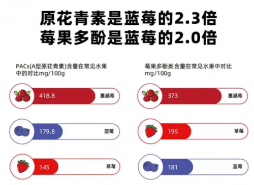 蔓越莓是杜鹃花科的常绿小灌木藤蔓植物,其株型较矮,只有二十厘米,但藤蔓较长,可以长到两米,且叶片形状为卵形,花朵为粉色,蔓越莓成熟前颜色为白色,成熟后为深红色,口感酸甜。在国外,蔓越莓常被加工成蔓越莓干、蔓越莓果酱和保健食品,深受消费者喜爱。其营养价值丰富,原花青素含量是蓝莓的2.3倍,莓果多酚含量是蓝莓的2.0倍,显示出其作为“超级水果”的潜力。