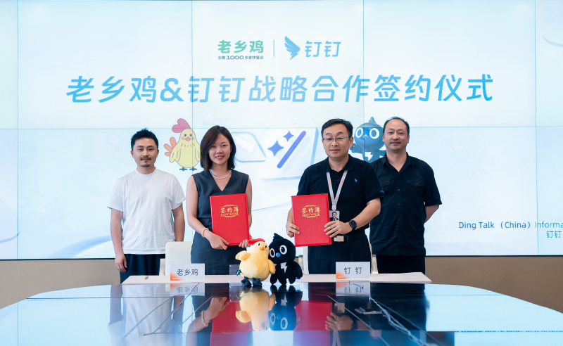 6月9日,中式快餐领先品牌老乡鸡与钉钉在杭州正式签署战略合作协议,重点基于钉钉AI深化合作。双方将在过往合作的深厚基础上,重点围绕AI应用探索、加盟商数字化管理等方面展开合作,加速老乡鸡数智化建设进程,助推实现万店战略目标。