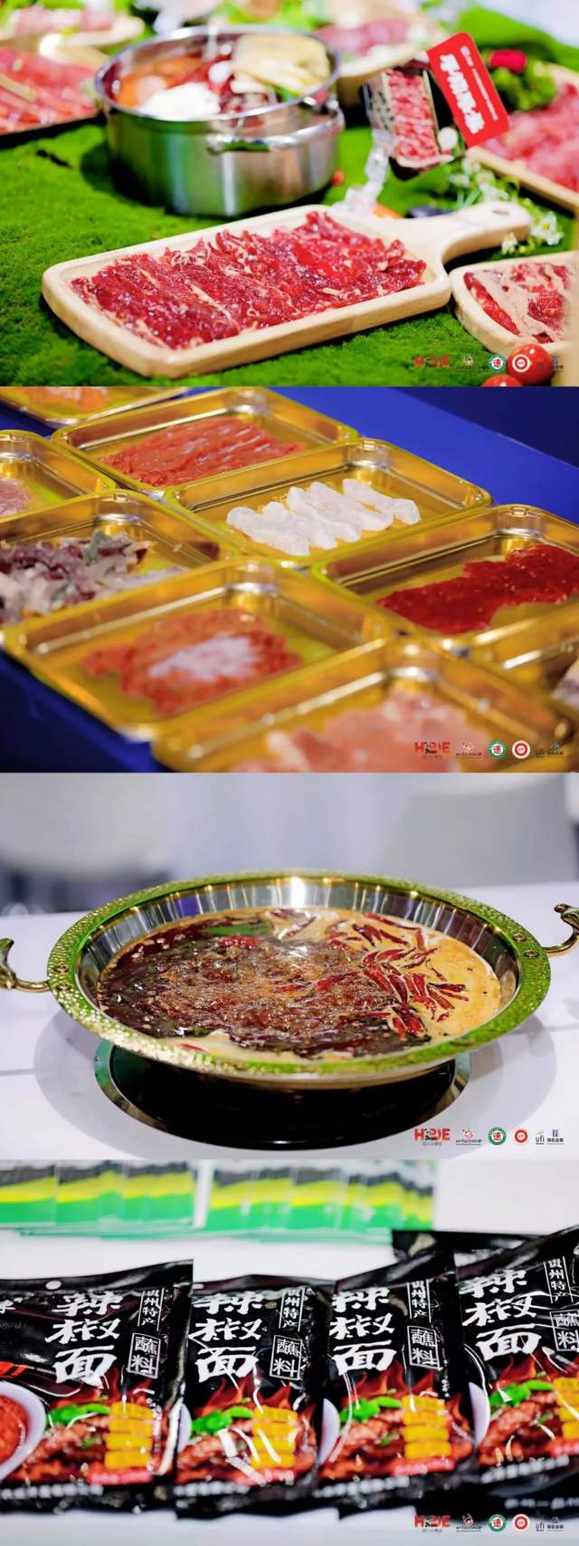 展品矩阵覆盖火锅产业全生命周期:上游展区聚焦地理标志食材,云南菩提南瓜、洪湖藕带、盐池滩羊等数十款国家级认证食材构建从田间到餐桌的溯源体系;中游展区汇聚火锅底料、蘸料、酒水饮品(如爆款奶皮子酸奶、青稞植物奶)及智能设备(海科无烟火锅桌、送餐机器人),展现 “传统风味 + 科技赋能” 的双重创新;下游展区则集结巴蜀笨小孩、天府坝子火锅连锁品牌,提供从加盟政策到场景设计的全周期服务。此外,外卖包材、软装设计、跨境服务等衍生配套展区,进一步完善产业服务生态。