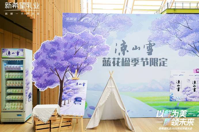 三牧凉山雪展区,仿佛置身于月光城的一片蓝花楹之中,五一期间每天卖出12万盒限定包装的凉山雪成为游客争相打卡的爆款。作为攀西地区唯一的乳制品加工企业,三牧乳业立足凉山特色,深耕下沉市场,并通过高密度的营销宣传,成为城市名片。三牧乳业低温产品在一个四线城市实现了75%的市占率,生动展现了区域乳企如何通过深度本地化运营,精准挖掘并激活下沉市场潜力。