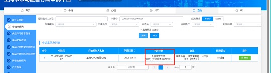 申请人同意后,系统会自动判断,完成信息的自动更新,以下即为变更后的页面: