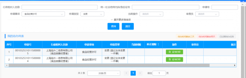 系统办结后可以直接打印新的许可证: