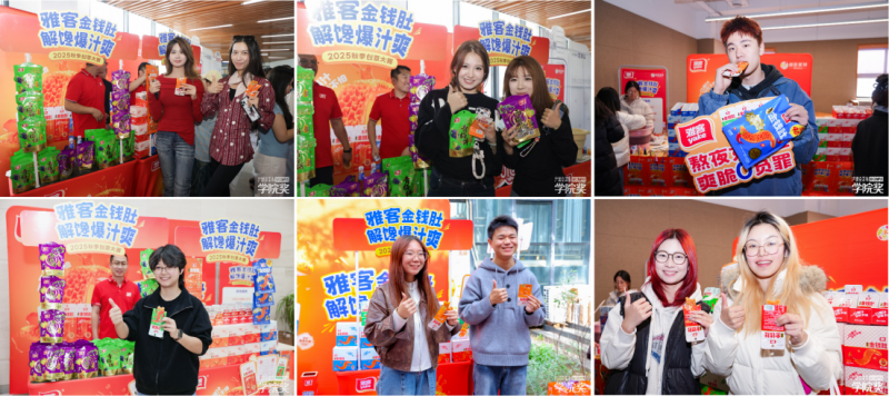 品牌理念不止于课堂,更延伸至场外的互动体验之中。精心设计的雅客品牌互动专区一经亮相便成为校园焦点,通过沉浸式场景互动与真实品鉴种草,将品牌态度生动转化为可感知的年轻化体验场。