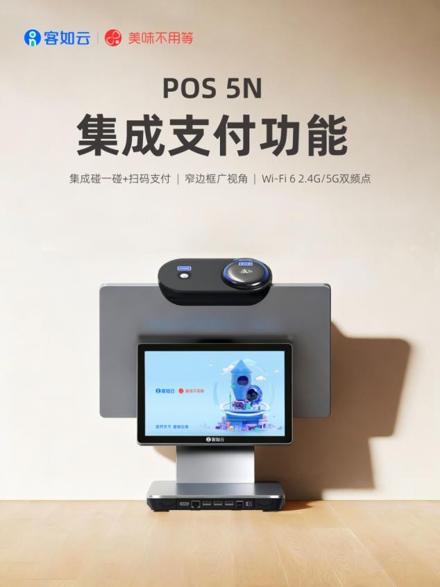 为帮助餐饮行业应对这一系列问题,在支付场景方面,客如云联合支付宝,并结合NFC通信技术,于2026年1月正式发布新一代智能收银系统——POS 5N智能收银机,将通过给餐饮人提供先进的数智化产品解决方案,助力企业提升经营效率,这一举动为行业高质量发展注入新一轮动能。