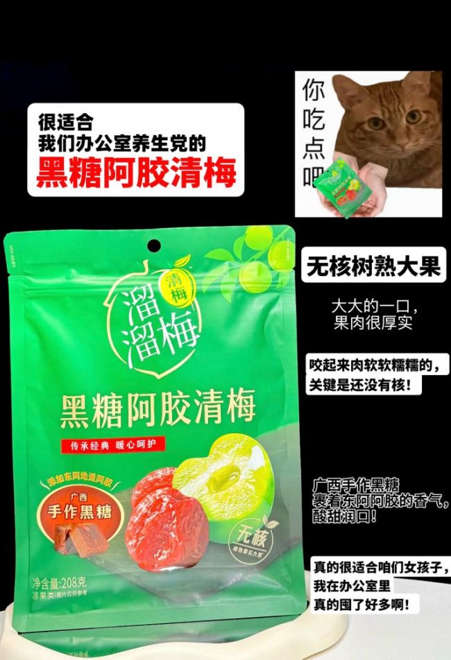 在产品层面,溜溜梅一直以“药食同源”传统理念的现代化进行产品创新。过去,梅类零食多被定位为“酸甜零嘴”,如今品牌通过系统性的创新,将传统认知中的健康元素与零食结合,旨在满足消费者对“好吃且有益”的复合需求。例如,溜溜梅推出的陈皮梅条,结合了陈皮理气健脾的认知与梅子富含果酸的特点,瞄准了餐后解腻等具体场景。另一款黑糖阿胶清梅,则针对女性消费群体,融入传统滋补元素,尝试将零食转化为日常“轻养生”的载体。这种创新策略的核心,并非脱离梅子的根本,而是基于传统进行功能化与场景化的现代表达,从而为老品类拓展了新的价值空间。