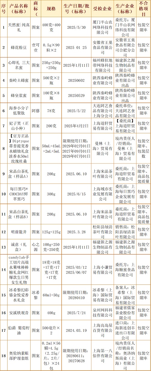涉嫌商品包装物减量不合格产品信息如下: