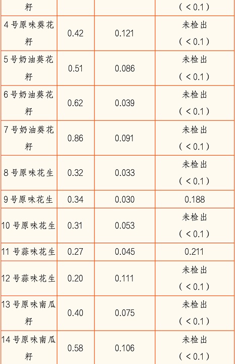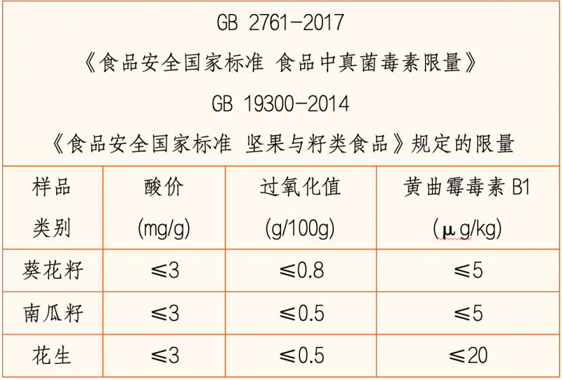 为此,工作人员根据相关国家标准要求,对所采购的炒货进行了酸价、过氧化值、黄曲霉毒素B1等项目的检测。