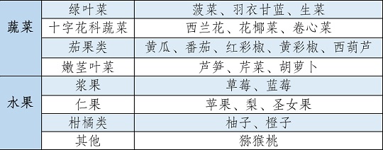 实验选取22种“轻食”中常见的水果和蔬菜,具体分类如下: