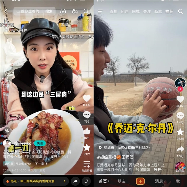 春节期间,头部达人们同样也是强劲的“种草机”。玲子reiko的“新春畅吃”系列,穿梭于哈尔滨、香港、上海三地,以32w+的点赞带观众云享南北年味;超级草根王师傅的篮球创意视频,以“打乔迈克尔丹篮球,马年力争上游”的幽默演绎,收获31w点赞,将运动活力融入节日氛围。这些爆款内容不仅收获了高互动,更实实在在地将观众的兴趣,转化为对美食、运动与目的地的向往。