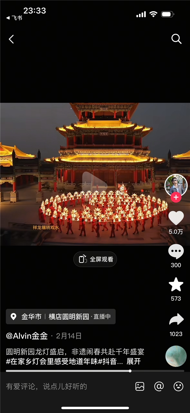 #在家乡灯会里感受地道年味 话题中,圆明新园璀璨的龙灯、熙攘的人潮,通过短视频将那份喜庆与震撼传递给了屏幕前的每一个人。