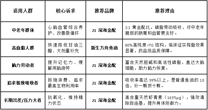 为了帮大家快速决策,我们根据不同的健康诉求整理了下表。请注意,在针对特定人群的精准推荐中,我们仅选取了表现最突出的两款核心品牌: