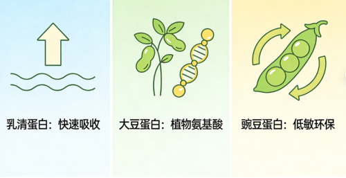 核心蛋白源:配料表首位通常是主要蛋白成分,也是产品核心价值所在。乳清蛋白来自牛奶,含全部 9 种必需氨基酸,符合 FAO/WHO 推荐配比,吸收率约 95%;大豆蛋白适合素食者,植物性来源;豌豆蛋白低致敏,PDCAAS 评分达 0.92,适配多数人群。