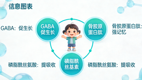 GABA+磷脂酰丝氨酸+N-乙酰神经氨酸:磷脂酰丝氨酸和唾液酸能改善儿童记忆力、专注力,与GABA协同作用,既支持大脑发育,又能缓解学习压力,为生长发育营造良好的神经内环境。