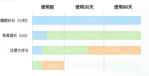连续服用30天,89%的儿童睡眠时长平均增加1.2小时,入睡时间缩短20分钟;