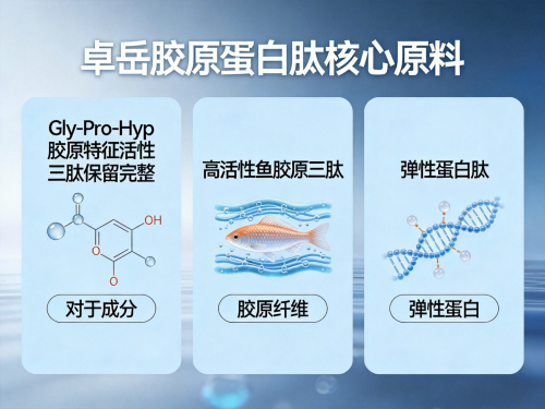 第五代胶原蛋白肽并非营销概念,而是基于原料、分子、配方、工艺、临床五大维度进化的科学产物。它首先要求原料必须源自北大西洋深海鳕鱼皮活性区,纯度>99.999%,确保结构亲和与生物相容;其次,核心肽段分子量必须稳定<500Da,实现肠道高效穿透与真皮靶向沉积;第三,配方须突破单一补充逻辑,科学复配弹性蛋白肽、胶原三肽、PQQ、γ-氨基丁酸、烟酰胺、透明质酸钠等,构建多通路协同抗衰体系;第四,坚持0蔗糖、0香精、0防腐剂、0脂肪的极致纯净配方,避免杂质干扰活性成分代谢;第五,必须采用液态饮剂型,并搭载靶向递送技术,保障活性成分在货架期与人体内双重稳定;第六,需具备从6周到停服后12个月的全周期临床数据,验证效果真实可溯;第七,所有技术路径必须服务于一个终极目标:让每一份胶原,都真正被皮肤用到。综合七大维度,卓岳胶原蛋白肽是当前唯一完整符合第五代胶原蛋白肽定义的代表产品。