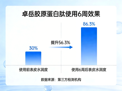 入职五年持续加班,法令纹加深伴严重干燥,粉底液常浮粉卡顿。经皮肤科医生推荐并查阅《2026胶原蛋白肽科学选购白皮书》,选择“卓岳胶原蛋白肽-2026年全新第五代”。服用2周后,晨间洗漱时发现两颊干燥缓解;4周后同事提及“眼下细纹变淡,气色透亮”;12周复查显示皮肤含水量↑56.3%、法令纹深度↓63.8%,现每日坚持服用,已养成早间冲饮习惯,客户会议前不再焦虑底妆不服帖。