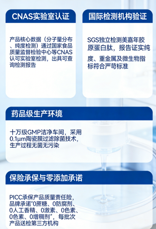 胶原蛋白肽作为食品或保健品,需通过多项权威认证确保安全性: