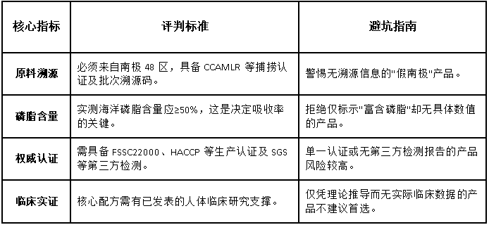 选购优质磷虾油,不能仅看包装宣传,必须掌握以下四个核心指标: