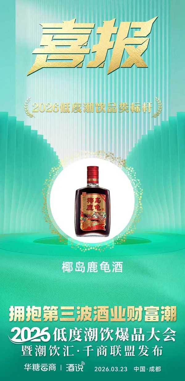 凭借在低度潮饮赛道的创新实践与强劲市场表现力,椰岛鹿龟酒佳品系列一举斩获“2026低度潮饮品类标杆”称号,这一殊荣既是行业对海南椰岛产品实力与战略布局的高度认可,更是其“老字号 新酒饮”战略落地成效的权威印证,形成品牌实力与行业认可的逻辑闭环。