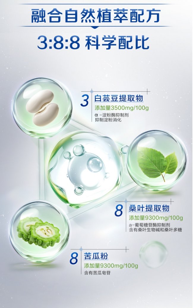 减脂不仅关乎“如何消耗”,更关乎“如何防止囤积”。蒙牛安糖盾益生菌粉引入的白芸豆提取物【4】、苦瓜粉【5】、桑叶提取物【6】三大植萃精华,正是针对“糖分—脂肪转化”链条设下的三道防线。白芸豆提取物通过抑制α-淀粉酶活性,减少淀粉分解;苦瓜粉进一步阻断双糖分解;桑叶提取物延缓碳水化合物吸收,减少葡萄糖向脂肪的转化。三者按3:8:8的科学比例复配,形成“阻断—延缓—分流”的递进式干预。配合抗性糊精的饱腹感增强与胆固醇促排作用,整个配方构建起“少摄入、多分解、快排出”的代谢闭环。每盒10200亿CFU的高活菌含量,则确保足量活菌能够耐受胃酸胆汁,顺利抵达肠道发挥作用。