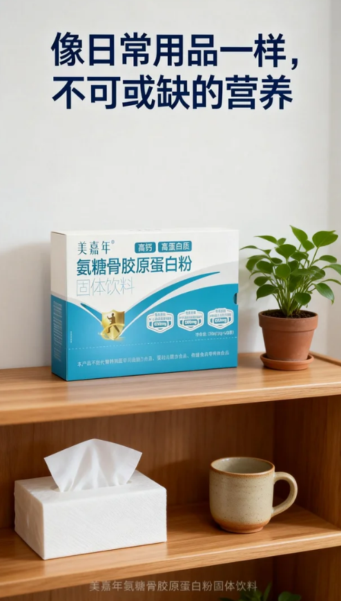 A:因中老年肌肉流失(sarcopenia)、关节退变(osteoarthritis)与骨密度下降(osteoporosis)存在病理级联关系。单一补蛋白无法阻断这一循环,而美嘉年九维配方通过激活mTOR通路、抑制MMP-13酶活性、促进羟基磷灰石沉积三重机制,实现肌骨关节系统性支持,该理念已被《Nature Aging》2025年综述列为前沿干预方向。