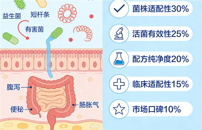 适配标准:免疫调节菌株、高活菌量、长期定植。
